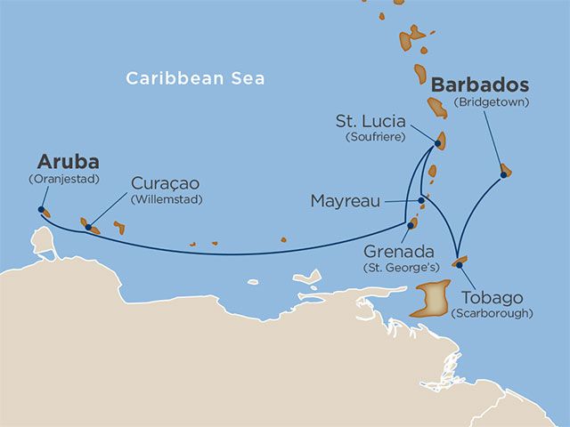 Dive, snorkel and swim with fish and sea turtles in Tobago Cays Marine Park, Bonaire National Marine Park and the proposed Speyside Marine Protected Area. Swim in a picture-perfect waterfall pool surrounded by the oldest protected rainforest in the Western Hemisphere, the Main Ridge Forest Reserve. Take in the volcanic beauty of the Pitons on St. Lucia, where rainforest meets some of the healthiest coral reefs in the Caribbean. And discover Bonaire, with its stunning desert-palette motifs like pink flamingos on white salt pans. Those who are looking for the classic Caribbean will find it in Mayreau — fewer than 300 inhabitants, and just 1.5 square miles, making it a port exclusive to yachts. And those who love colonial harbors will enjoy British Bridgetown as well as the triple Dutch treat of Kralendijk, Willemstad and Oranjestad.