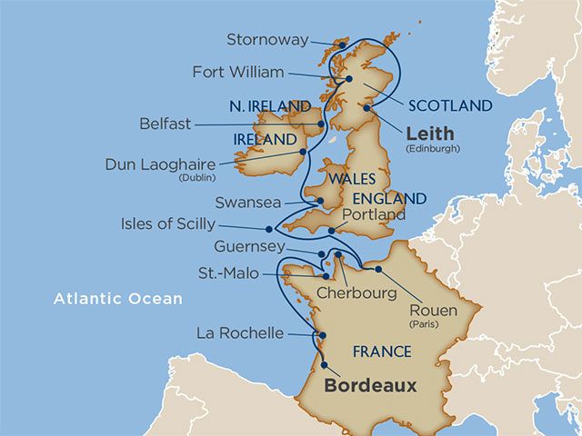 Follow in the footsteps of Joan of Arc, King Arthur, William Wallace, and St. Patrick on this multifaceted journey. Walk along the banks of the Seine and admire the restored Notre-Dame Cathedral in Paris during your two-night stay. Dine and sip wine at a 17th-century chateau in Saint-Émilion during an overnight in Bordeaux. And explore the French countryside from half-timbered houses to wedding cake abbeys. Across the Channel, find haunting stone circles and boisterous English gardens, stern-faced castles and friendly Irish pubs, all wrapped in wild scenery and legends based in both fact and fantasy. Explore Titanic history and the Giant’s Causeway from Belfast. Ride a steam train through Hogwarts scenery from Fort Williams. Then wrap it all up in Stornoway and Edinburgh where famous castles, Iron Age villages, and medieval streets bring the Celtic past to life.