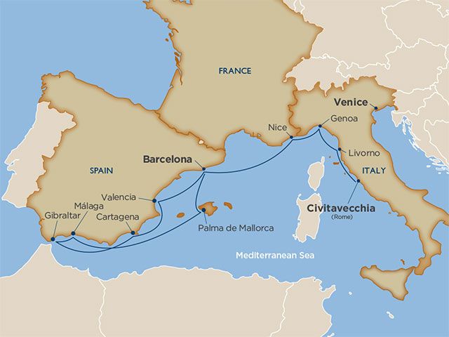 Experience unhurried destinations rich in breathtaking architecture, romantic solitude and authentic hospitality on this off-season sailing, with overnight port stays throughout Italy, France and Spain. Enjoy an unobstructed view of Michelangelo's David in Florence, and take advantage of your overnight to indulge in Tuscan wines, Pisa tower perspectives and tasty truffle hunts. In Nice's Old Town, savor gourmet coffees and mouthwatering croissants at local cafes for a leisurely afternoon break. Catch a glimpse of Spain's contested Holy Grail chalice amid cavernous vaulted ceilings in Valencia Cathedral. Discover the magic of Málaga — Europe's warmest winter destination — as you explore Caliph castles and sample delightful tapas. Tour Palma de Mallorca’s historic Palma Cathedral and stroll the Old Town, while in Cartagena, visit the Roman Theatre, which at one time held 7,000 spectators.