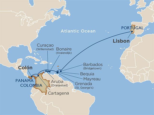 This is a voyage for those who want to see and do things out of the ordinary. Cross the Atlantic and arrive in the Southern Caribbean, the last part of the Caribbean that cruisers explore. Because these tend to be smaller and less developed Caribbean islands, they’re meant for the savvy traveler to discover. On arid Aruba, find divi-divi trees that always point southwest, the direction of the trade winds. In the Grenadines and Grenada, discover rainforests, mountains and waterfalls. And the privacy and seclusion of places like beautiful Mayreau with a population of less than 300. Go snorkeling in the clear waters of Grenada to find an eerie undersea sculpture garden being modified by sea creatures. See flocks of pink flamingos on Bonaire. Spend time in the UNESCO towns of St. George’s, Bridgetown and Cartagena where gingerbread, forts and Georgian architecture unravel a complex past.