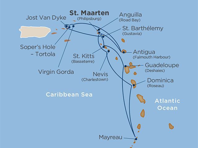 Skip the usual Caribbean cruise stops and discover the small harbors, overlooked havens and most remote secrets among the Leeward Islands. Whether you’re looking for hidden shops, sampling new cuisine or seeking a local place to sip rum cocktails over the melodic beat of steel drums, this highly personalized adventure is an intimate opportunity to familiarize yourself with the lesser-known charms of Barbuda, Soper’s Hole in Tortola, Gustavia in St. Barthémy, St. Lucia’s Pigeon Island and much more.