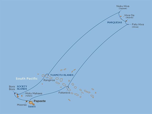 Go beyond a typical Tahiti cruise during this island odyssey throughout French Polynesia and the remote Marquesas Islands. Follow in the creative footsteps of Symbolist artist Paul Gauguin as you explore his former home on Hiva Oa, then run your fingers along the hand-hewn surfaces of the largest Tiki sculptures found anywhere in the Pacific. Journey to Fakarava’s lagoon, a UNESCO Biosphere Reserve teeming with seabirds and tropical fish. Admire coral gardens from your glass-bottom boat near Tiputa on Rangiroa. Swim with playful manta rays and docile black-tipped reef sharks in Bora Bora’s Blue Lagoon prior to a romantic starlit overnight port stay. Trek along Moorea’s rolling Opunohu Valley trail past fruit plantations and through an exotic hardwood forest on your way to majestic views of Mount Mouaroa, Mount Rotu and Mount Tohiea — three of the highest summits in the Society Islands.