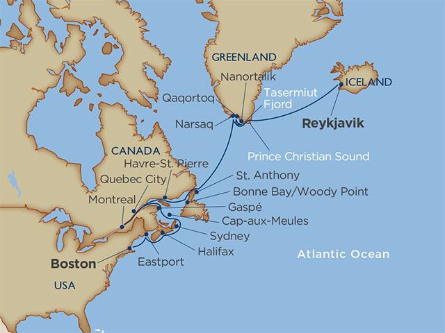 Venture into the lesser-known coastlines and communities of Greenland, Canada and New England during this remarkable voyage crossing the North Atlantic. Admire fractured glaciers, ivory ice fields and drifting ice floes on a day of scenic sailing in Greenland’s remote Prince Christian Sound. Sample grilled wolf fish, dried salted cod and tender musk ox meat amid stacked crab pots, fish-drying racks and brightly painted houses in Qaqortoq, Nanortalik and Narsaq in Greenland. Wander the grounds of a 1,000-year-old Norse settlement near St. Anthony, and tour sod buildings identical to those that sheltered early settlers from harsh Newfoundland winters centuries ago. Walk among weathered French and British artillery artifacts at National Battlefields Park, or sip your way through Quebec City’s outstanding microbreweries on a delicious walking tour in a thriving downtown community.